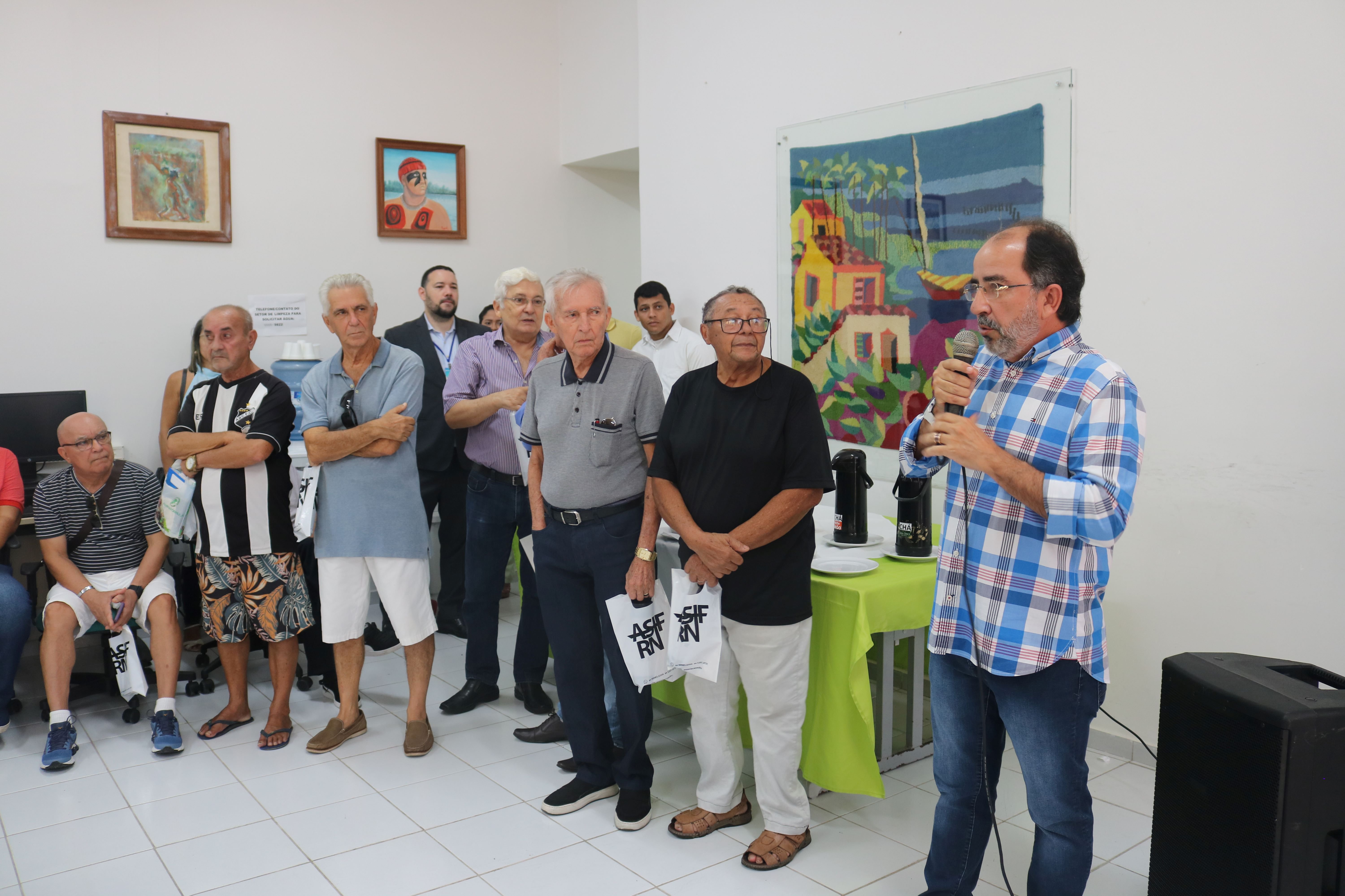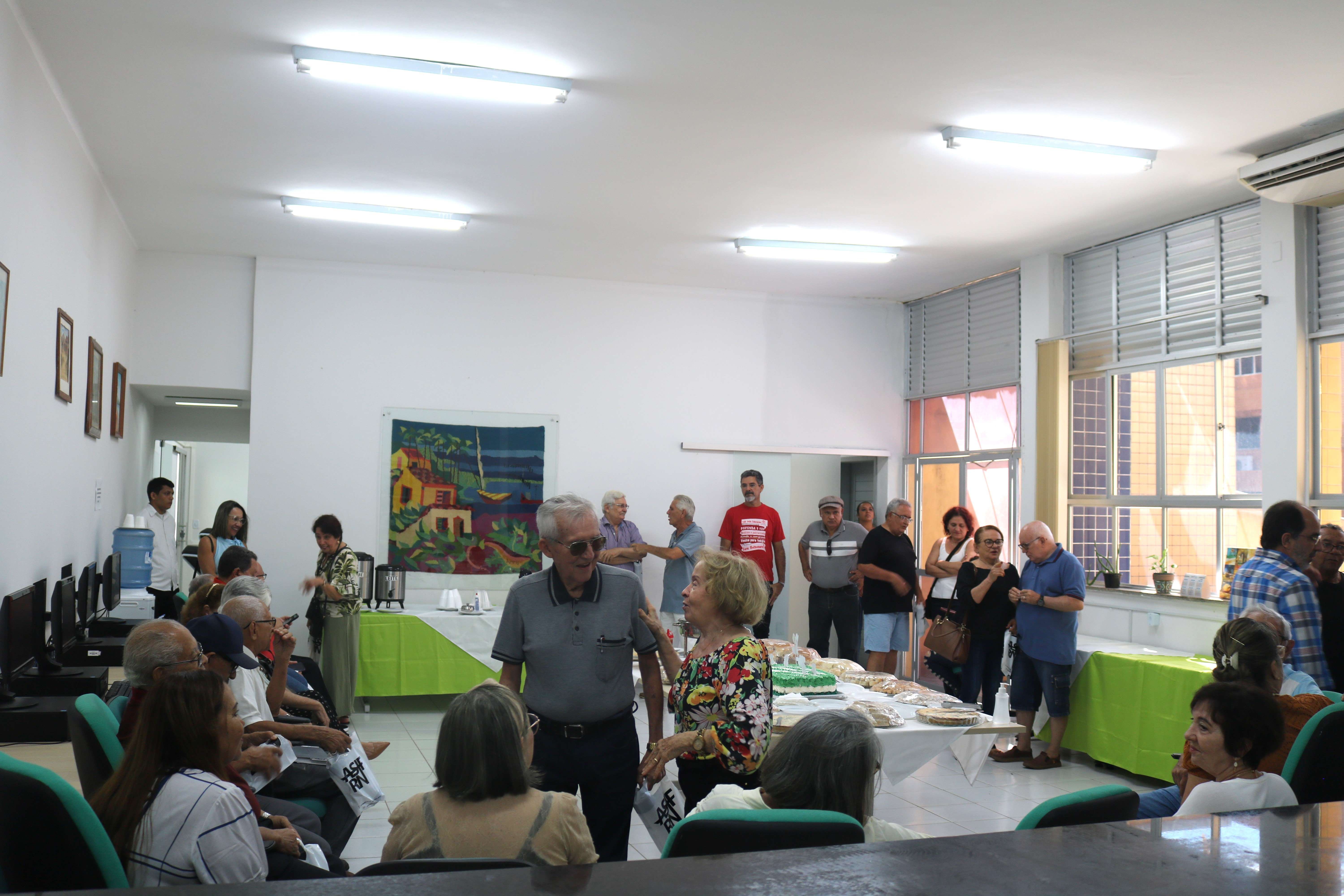 Na ultima quinta-feira, 04/05, aconteceu o encontro dos aposentados, Café e Prosa. O evento é uma realização da ASIFRN e do SINASEFE Natal e tem como objetivo comemorar os aniversariantes do quadrimestre, promover o reencontro entre os associados aposentados e proporcionar um momento de descontração e confraternização. Na ocasião, estavam presentes o diretor-geral do Campus Natal-Central, Jonas Lemos, e a pró-reitora Antônia Francimar, representando o reitor José Arnóbio. Entre os associados presentes, o professor aposentado Nivaldo Ferreira falou um pouco sobre a importância do evento e relembrou momentos vividos durante os anos de serviços prestados à instituição.