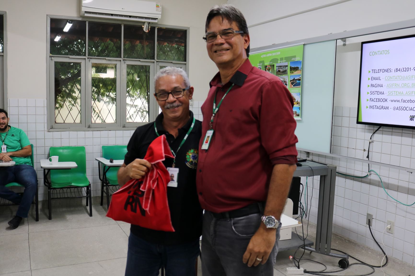 Na ocasião foi entregue aos Diretores gerais e aos representantes de cada campus um kit da ASIFRN. E dentro do projeto qualidade de vida, foi entregue ao campus Mossoró os coletes para prática de esportes dos associados.